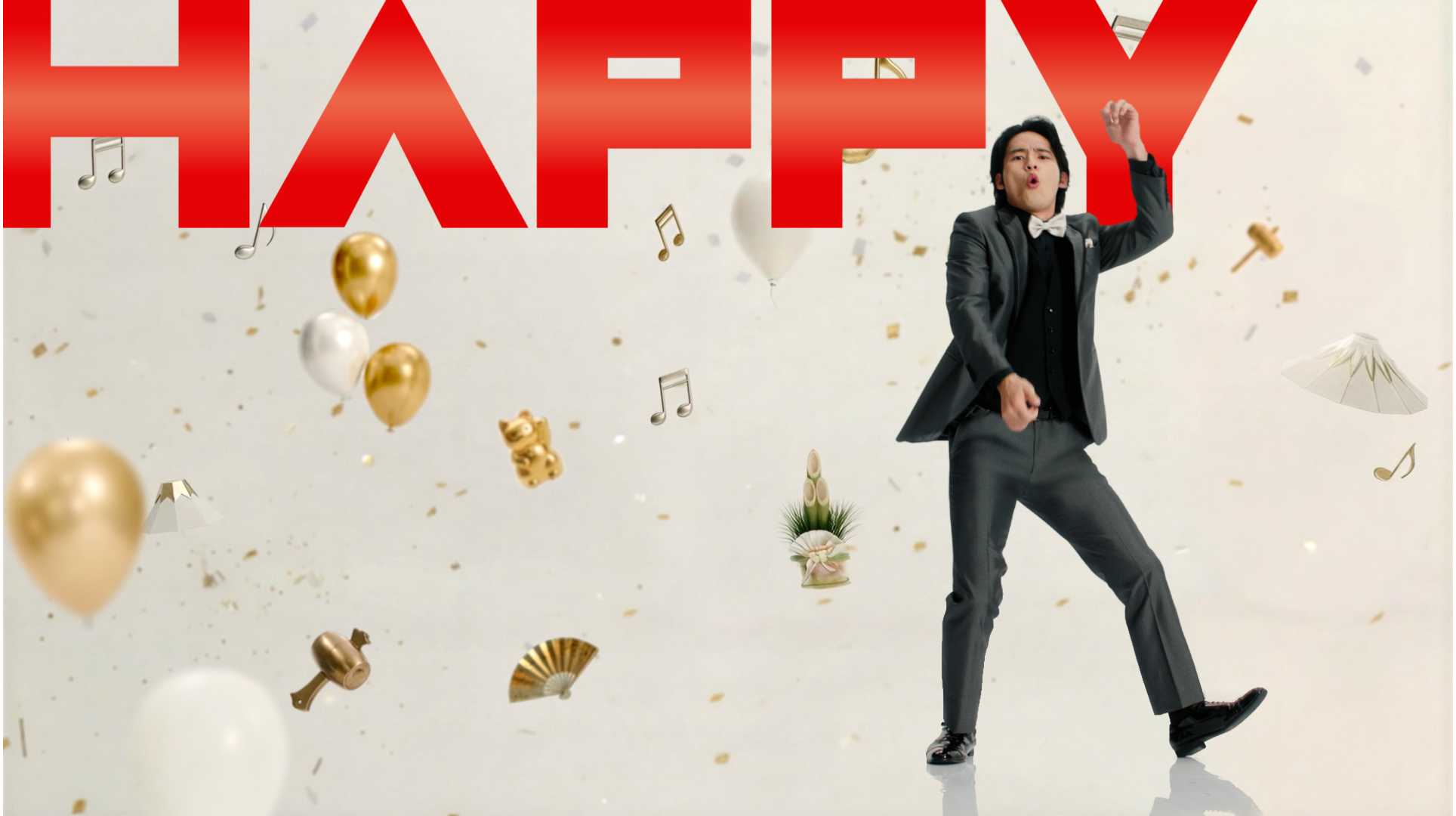毎年、和の装いで年末年始を彩ってきた新春初売りCMですが、今回は年末年始を祝う『ニューイヤー パーティー』をテーマに、パーティードレスとタキシードに身を包み、ポップで華やかなCMとなりました。アドリブのダンスがメインで構成されており、撮影現場は終始、和気あいあいとした雰囲気で、思わず笑顔になってしまう素敵な映像になっています!