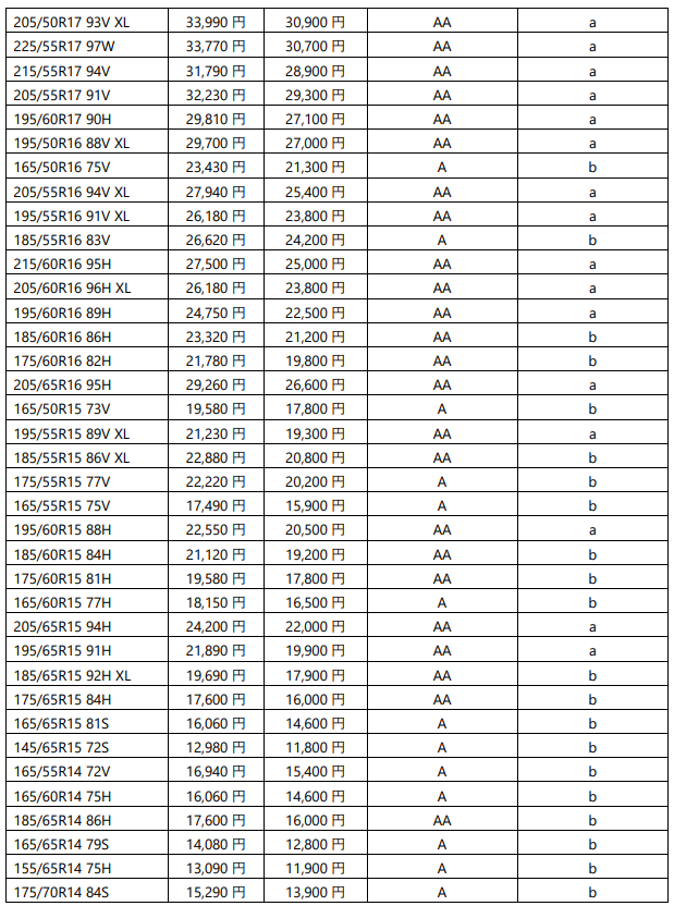 ※ タイヤの表示に関する公正競争規約に定められた試験方法で試験を行っております。