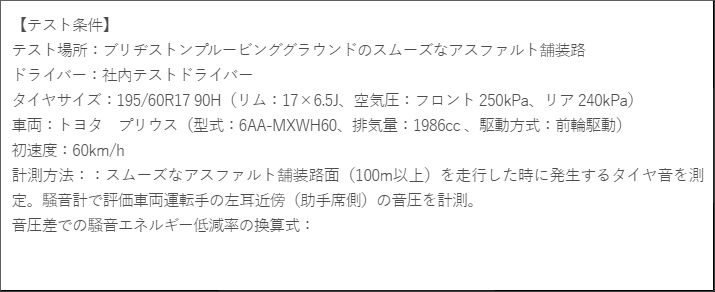 ※ 上記テスト結果に関する詳細なデータについてはタイヤ公正取引協議会に届けてあります。