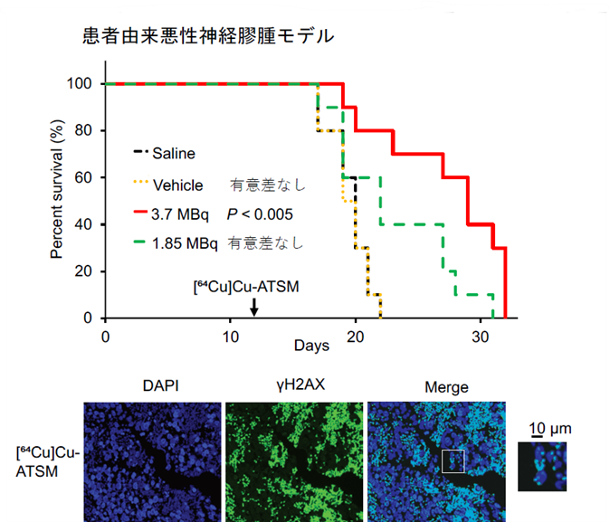 図3 患者由来悪性脳腫瘍モデルに対する[⁶⁴Cu]Cu-ATSM局所投与による治療効果(生存期間延長)
