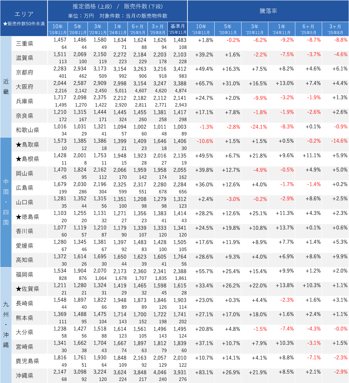 ※2025年11月の対象件数が50件未満の県については、算出根拠となるデータ数が少ないため★をつけて掲載