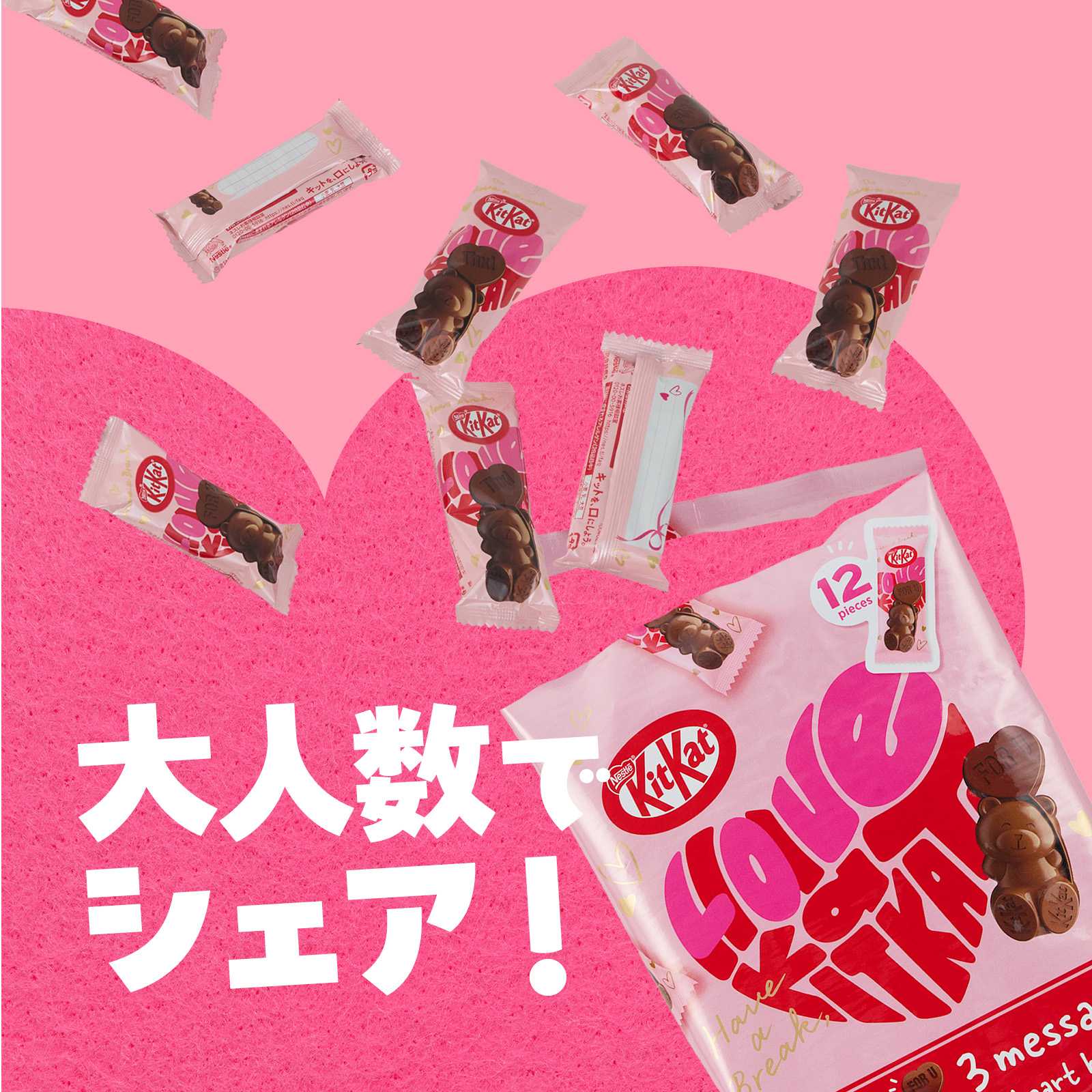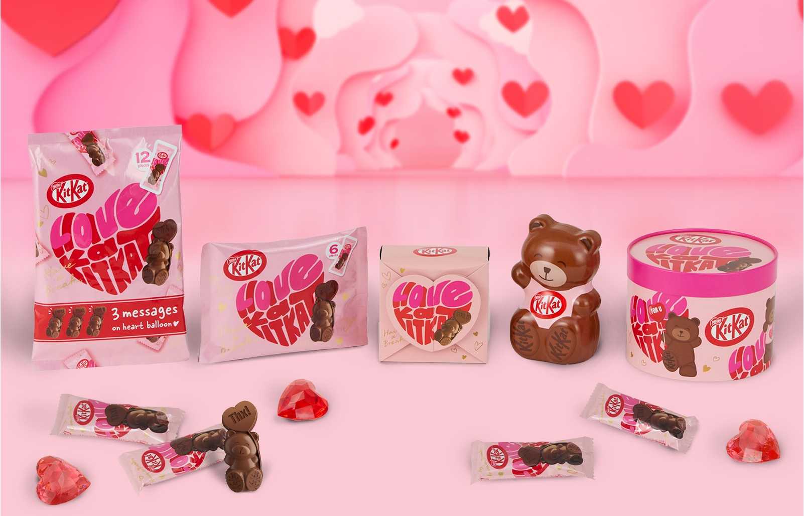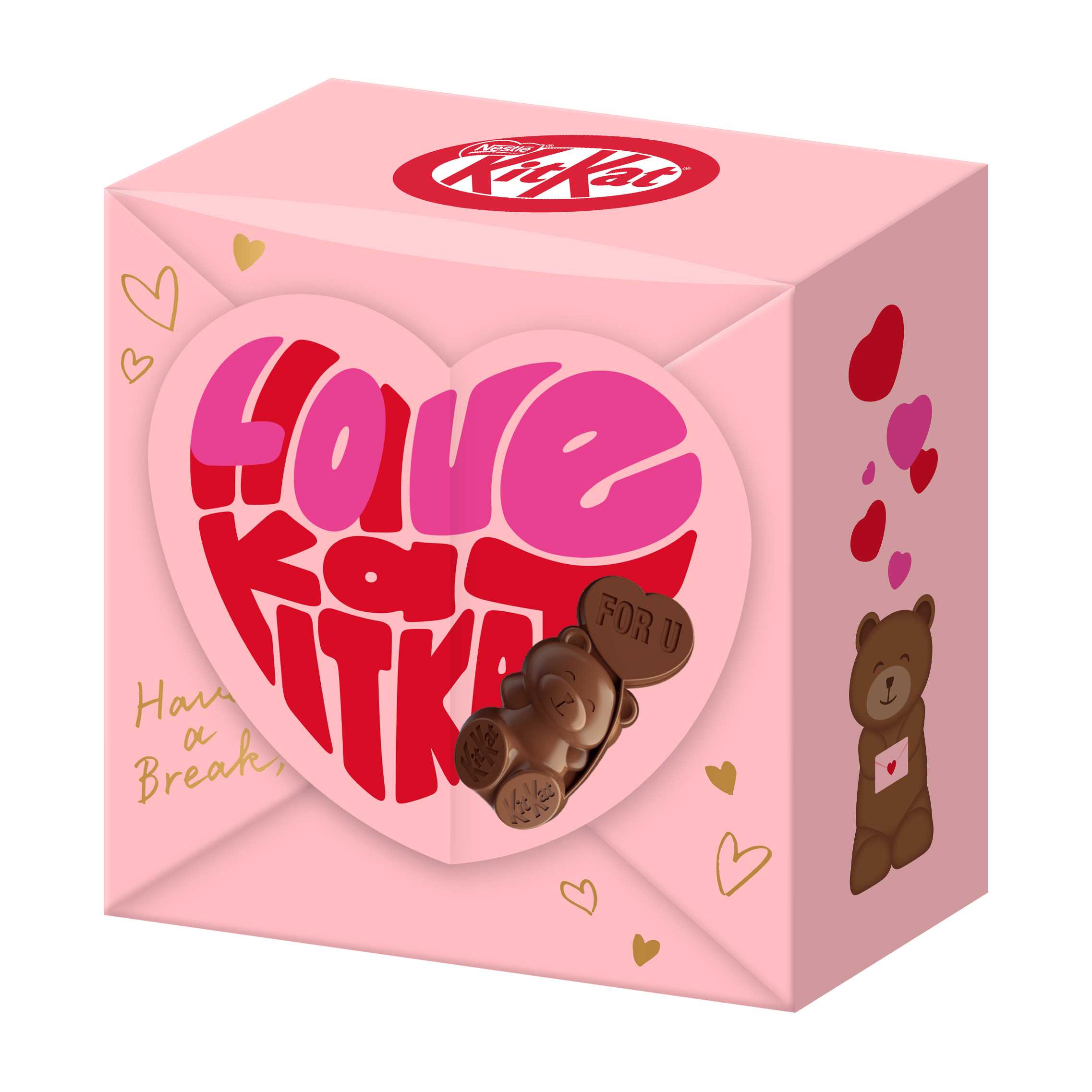 ネスレ日本が2022年以降、バレンタインシーズンに販売している「キットカット ハートフルベアー」は、クマの形をかたどった可愛らしい立体デザインや華やかなパッケージが特徴です。バレンタインの楽しみ方が自分へのご褒美や家族・友人へささやかな感謝を伝える日へと広がる中、“気軽に贈れる可愛さ”が毎年好評をいただいています。