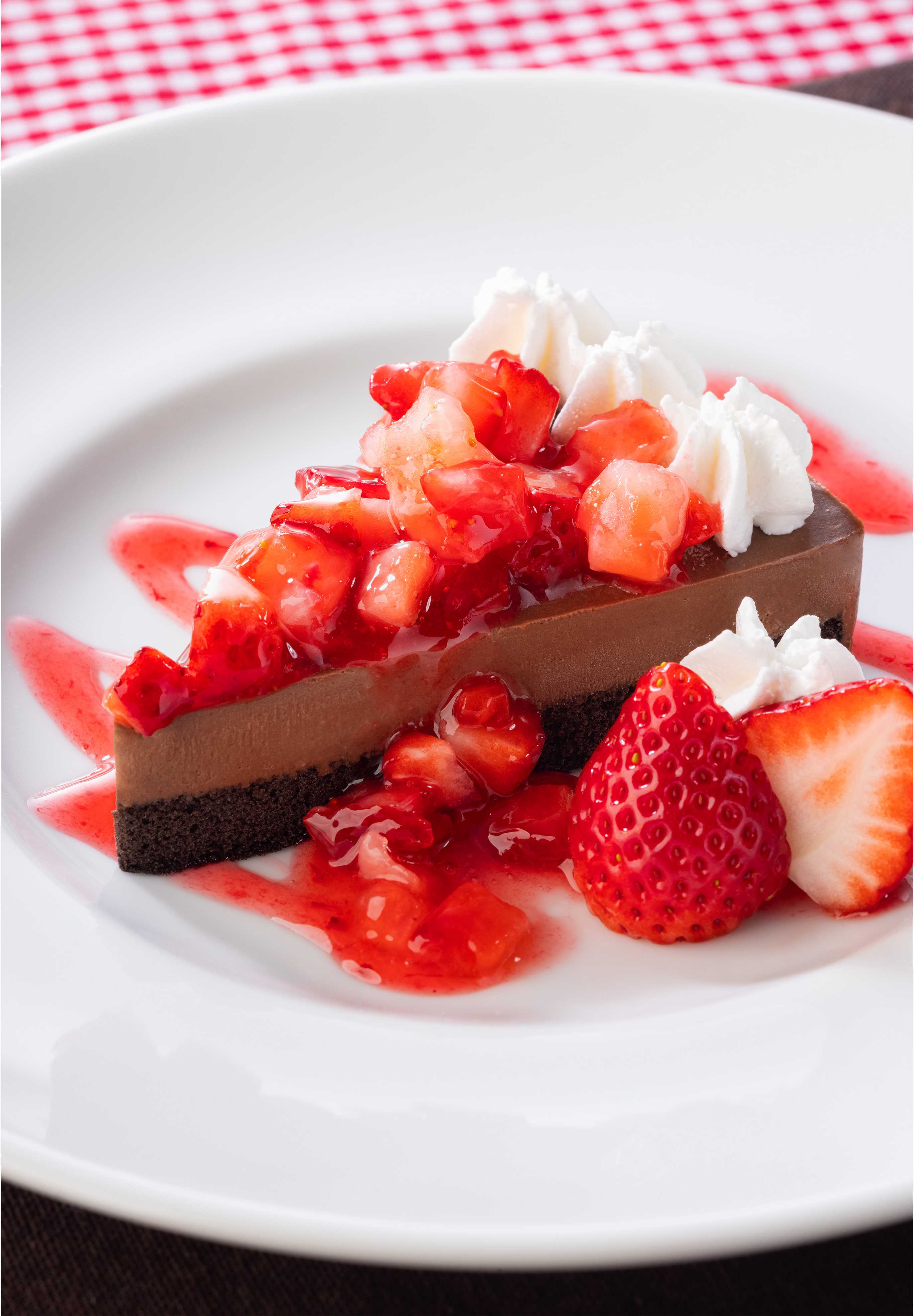 今年の『いちごフェア』では、「苺チョコアイスケーキ」が新たに登場します。ストロベリーソースに絡めたいちごを、ほろ苦く濃厚なチョコアイスケーキの上にたっぷりとのせた当メニューは、華やかな見た目で、目でも楽しめるメニューです。旬の甘酸っぱいいちごと、口の中でとろける生チョコのような味わいのチョコアイスケーキをご堪能いただけます。