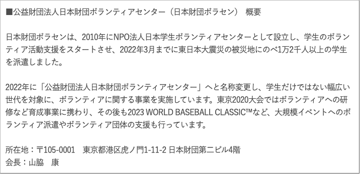 日本財団ボランティアセンター(東京都港区虎ノ門1-11-2 日本財団第二ビル4階)
