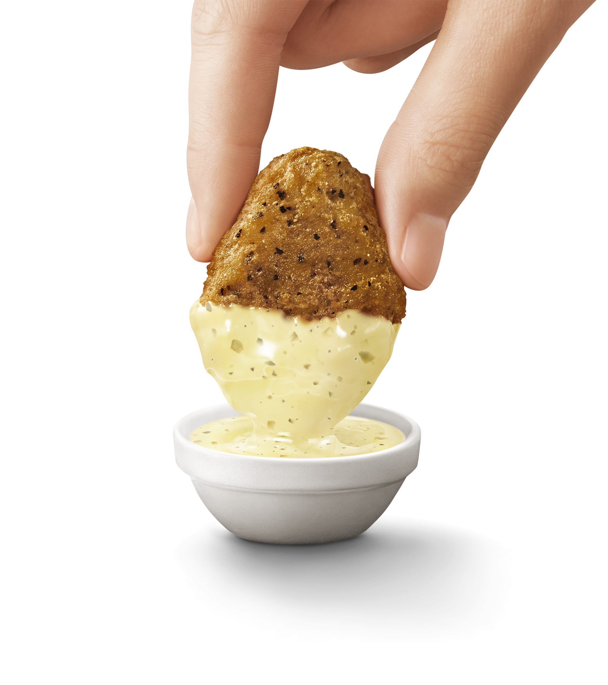 今回、この商品の魅力をさらに引き立てる2種類の新しい期間限定ソースが登場します。「やみつき旨にんにくソース」は、すりごまの香ばしさに濃口醤油とにんにくの力強い旨みを重ねた、焼き肉のタレを彷彿とさせる和風ソースです。隠し味としてソテーオニオンとごま油を加えることで、コクと深みのある味わいに仕上げました。「サワークリームタルタルソース」は、まろやかでクリーミーなサワークリームにガーリックの旨みを加え、ピクルスの爽やかな酸味がアクセントになった、コク深くもさっぱりとした味わいのソースです。オニオンパウダーを隠し味に用いることで、ナゲットの旨みをさらに引き立てます。もちろん、通常のチキンマックナゲットとも相性抜群。お好みのソースで、自分だけの“ナゲットの楽しみ方”を見つけてください。