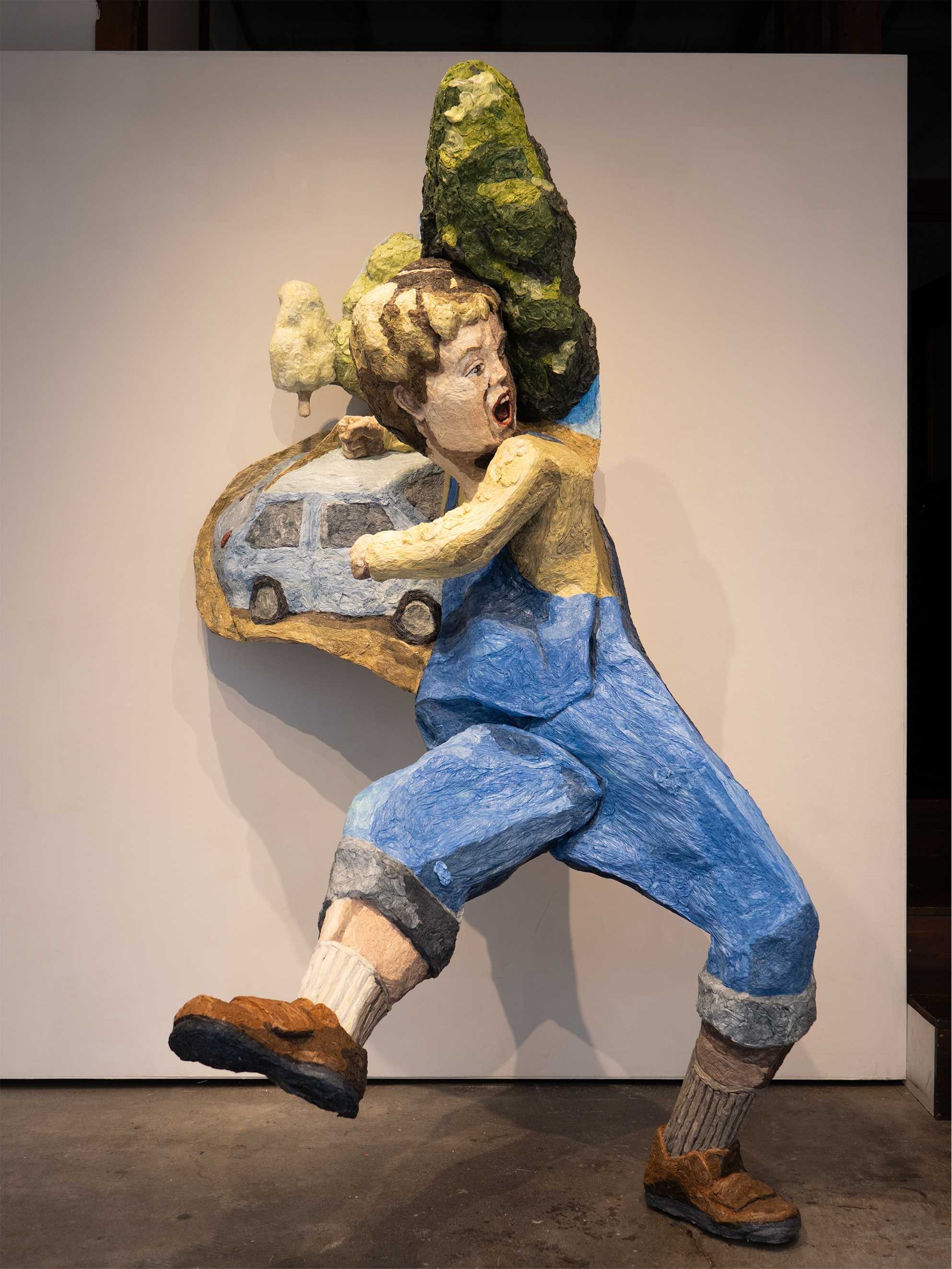 《鬼ごっこをする少年の風景》H2100×W800×D1200mm/紙、酢酸ビニル系樹脂、木/2025