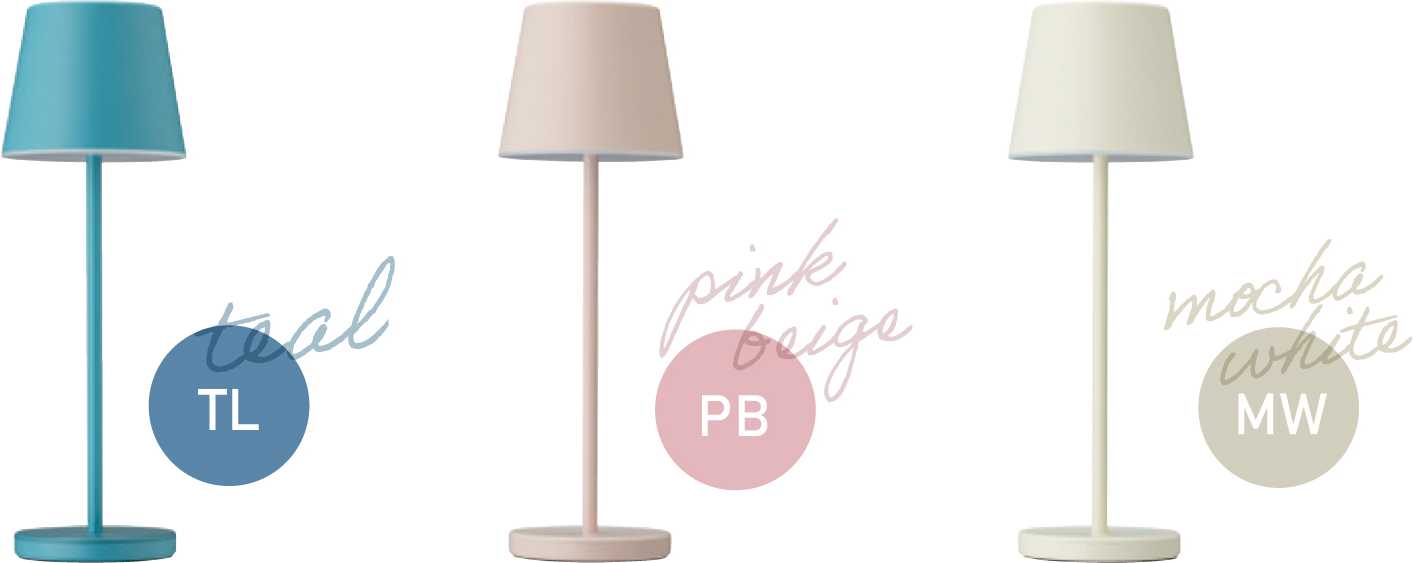 e angleの『カラーデザインシリーズ』は、お部屋をおしゃれに彩るカラーとデザインが特長です。今回、新たなラインナップとして、「もっと自由に、明かりを楽しみたい」というお客様の声にお応えし、電源コードに縛られないコードレスタイプのインテリアスタンドを発売いたします。