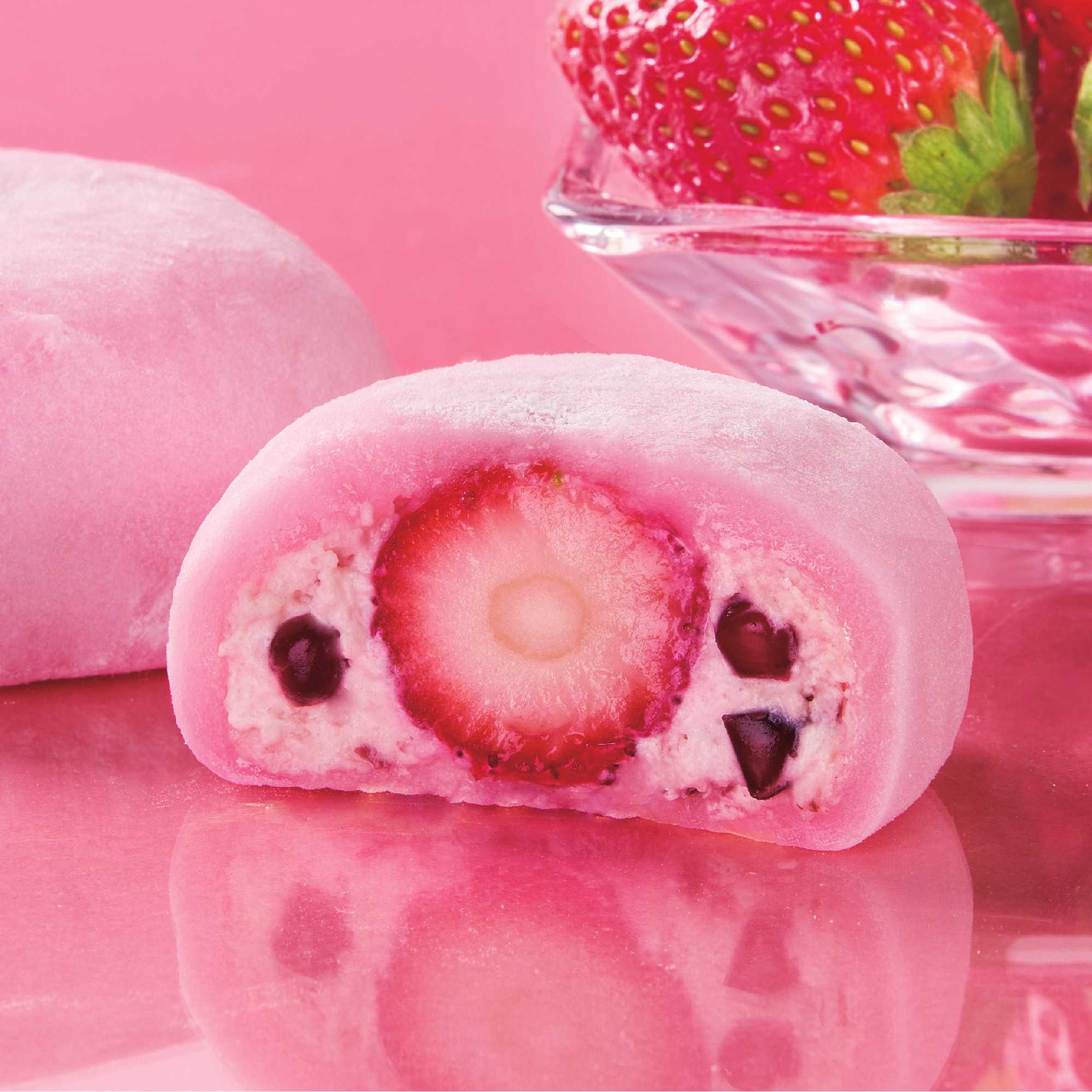 滋賀県産羽二重もち米を使用し、ピンク色に色付けした大福生地で、優しい味わいの自家炊き白餡を包み、甘みと酸味のバランスが良い紅ほっぺ種苺を挟みました。白餡と苺を合わせることで、紅ほっぺ種苺の上品な香りと爽やかな甘さが口いっぱいに広がります。