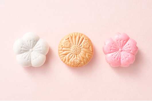 ・意匠や菓銘とともに:「桜」・「菊」・「梅」をかたどった可愛らしい形に、縁起のよい銘。