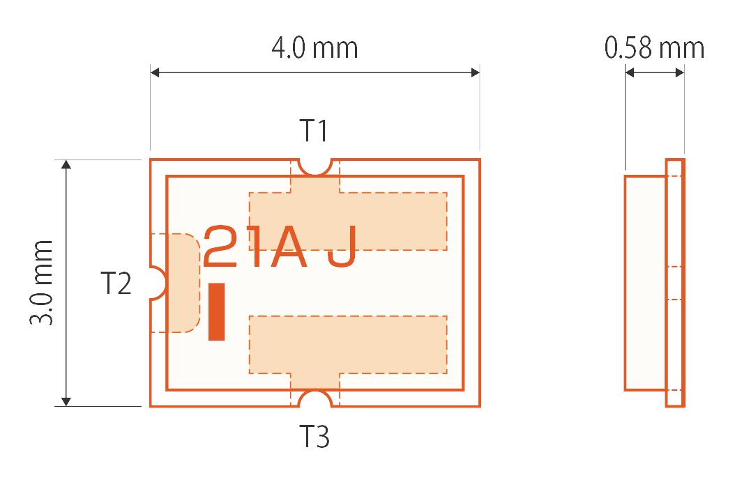 二次保護用の表面実装型ヒューズとしては世界最薄となる4.0mm、縦幅3.0mm、厚み0.58mmの製品サイズで、当社従来品比で31%の薄型化を実現