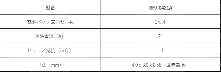 デクセリアルズ株式会社(本社:栃木県下野市、代表取締役社長:新家由久、以下、当社)は、このたび、リチウムイオンバッテリーの二次保護のための表面実装型ヒューズとして世界最薄※1となる、厚み0.58mmを実現した「SFJ-21A」シリーズ(SFJ-0421A)を開発、製品化したことをお知らせします。