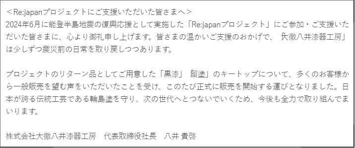 本製品の販売を通じて、HHKBはこれからも日本の伝統工芸を未来につなぎ、石川県・輪島の復興と地域活性化に貢献してまいります。