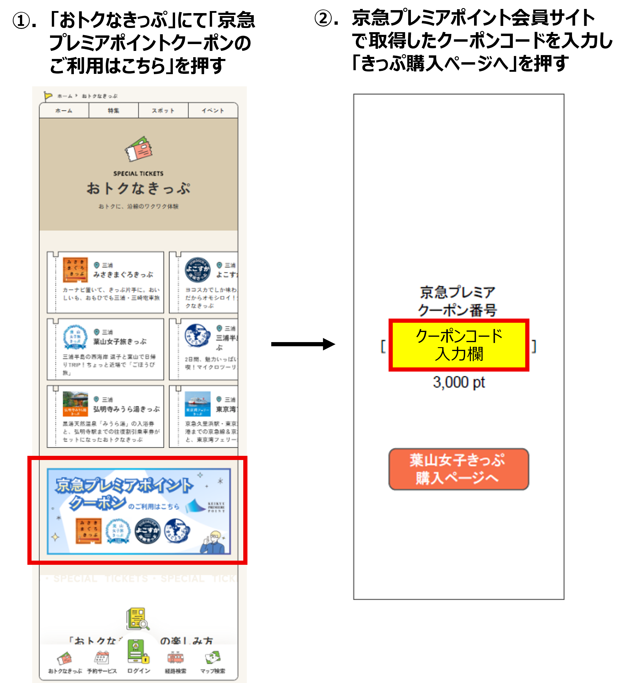 2.抽 選 対 象 者 期間中に京急プレミアポイントクーポンを利用してデジタルきっぷを購入した方