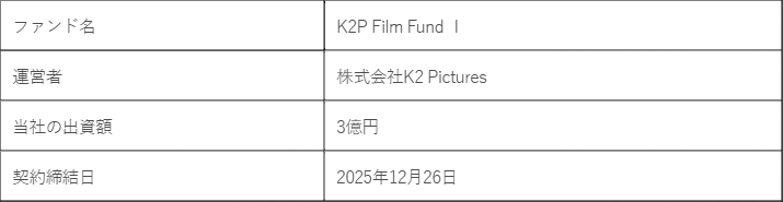 今回、本ファンドを評価いただき、ご参画が叶ったことはこの上ない喜びであり、大きな手応えを感じています。互いの知見を活かし、日本映画の新たな価値創出を目指してまいります。
