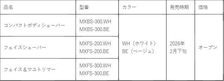 ■コンパクトボディシェーバー MXBS-300.WH/MXBS-300.BE