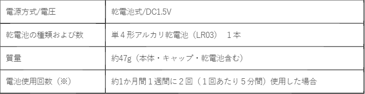 ※電池使用回数について、いずれも毛の濃さ、肌にあてる力、お手入れのしかた、周囲温度などの使用条件によって、使用回数が少なくなることがあります。
