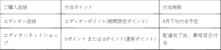 ご購入店舗により、付与されるポイントの種類や条件が異なります。
