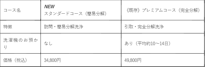 ドラム式洗濯機の普及に伴い、日常のお手入れだけでは難しい洗濯槽のニオイや汚れへのご相談が増加しています。これまで当社では、洗濯機をお預かりして分解洗浄する「プレミアムコース(完全分解)」を提供してまいりましたが、「毎日使う洗濯機を長期間預けるのは難しい」「代替機での洗濯が不便」といったご要望も多く寄せられておりました。こうしたニーズにお応えするため、「お預け期間ゼロ」「スピーディー」「任せて安心」なプランを新設いたしました。