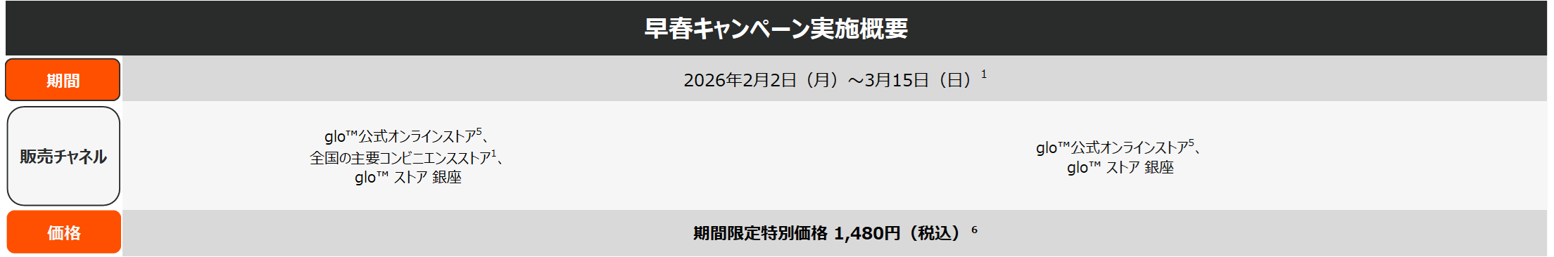また、今回の価格改定にあわせて、2026年2月2日(月)から3月15日(日)までの期間[1]、「glo™ Hyper Pro」の全5カラーを、期間限定の特別価格1,480円(税込)で販売する早春限定キャンペーンを全国で実施いたします。