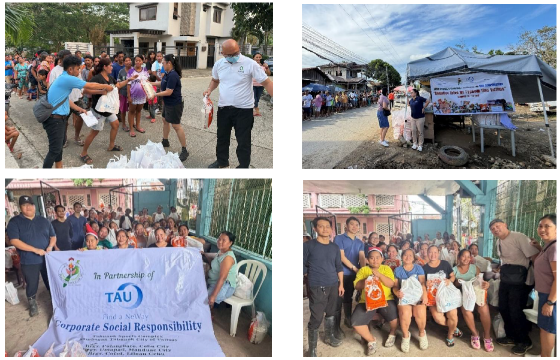 当社は2015年にマニラオフィスを開設し、フィリピン国内における損害車の適正流通を推進してまいりました。この度の令和7年11月9日、フィリピンにおいて発生した超大型台風26号により、被災者数は約517万人以上にのぼるとされています。当社は、被害に遭われた皆様の一助となりたいとの想いから、義援金として100万円の寄付を実施いたしました。また、同年12月19日および20日には、セブ保険協会と協力し、義援金100万円を原資として、セブ州内の4つの地区の約400世帯の方々へ食事の配布を行いました。
