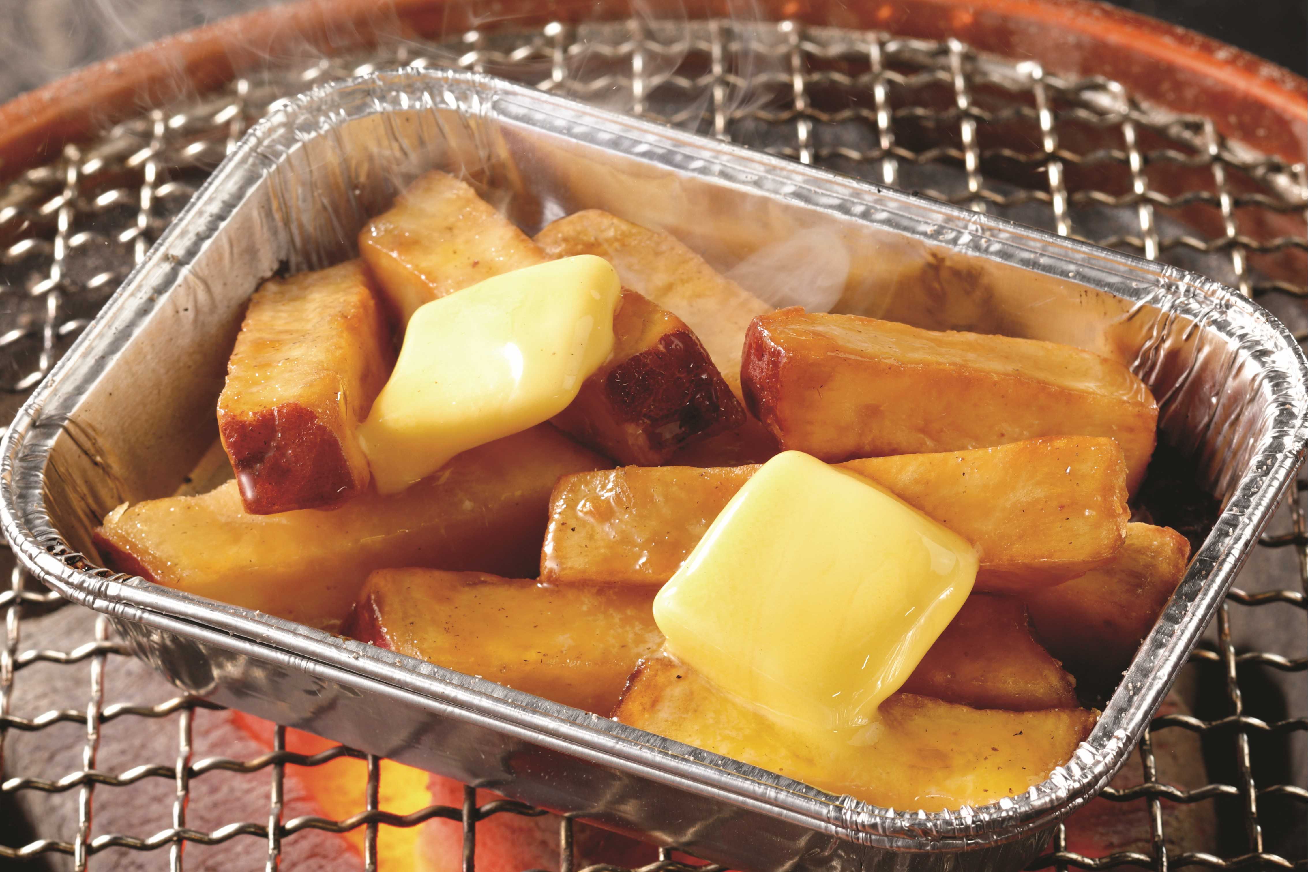 蜜おさつバター:ホクホクで甘みの強いさつまいもに、バターを絡ませて。甘じょっぱさの虜になる女性続出!仕上げに「牛角アイス」 を乗せて“熱冷”スイーツにも。