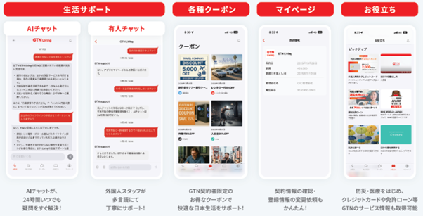 「GTN Living」は、GTNの家賃保証サービスを利用する外国人入居者を対象に、保証×生活サポートを一体で提供する公式アプリです。