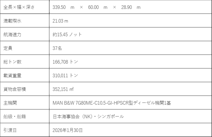 本船は、LNGと低硫黄燃料油の双方に対応する二元燃料主機関を搭載しています。LNG燃料使用時は、従来型の重油焚き主機に比べ、二酸化炭素(CO2)では約25~30%、硫黄酸化物(SOx)では100%、窒素酸化物(NOx)では約85%の排出削減効果が見込めます。VLCCにおいては2025年度以降の契約船から適用される、二酸化炭素排出量規制のEEDIフェーズ3※1に適応しています。