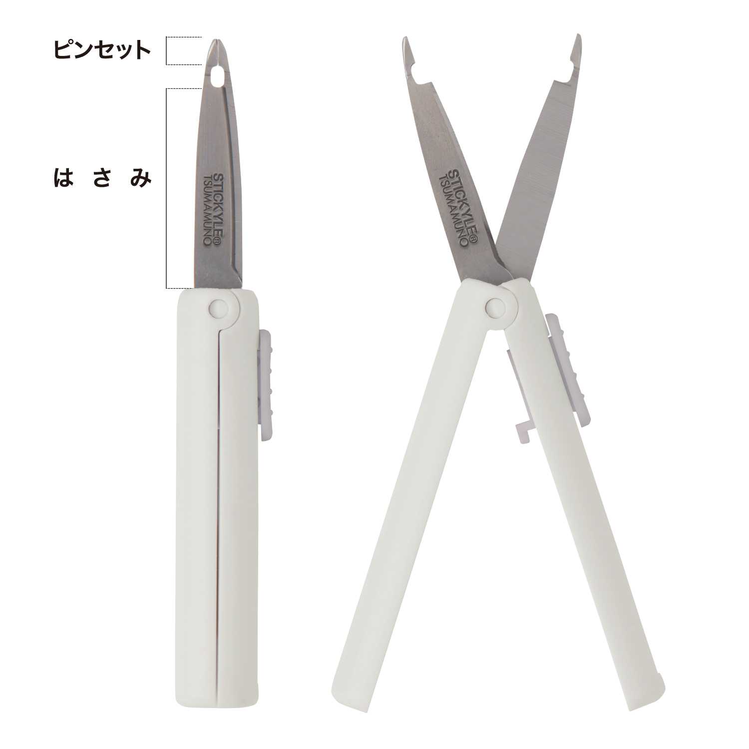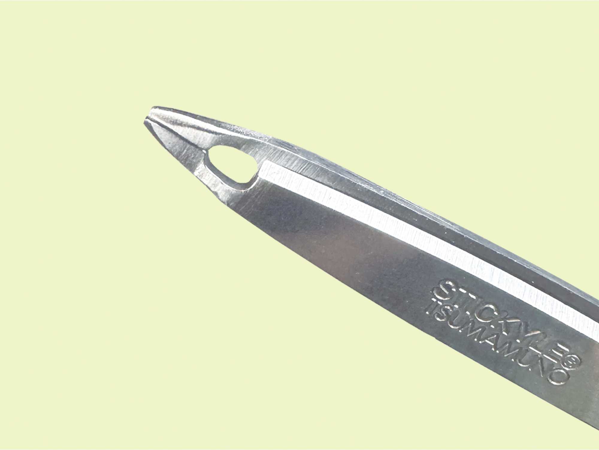 刃先はピンセット形状、下部ははさみ形状の一体構造により、「つまむ」「切る」の作業をこれ一本で完結。