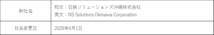 日鉄ソリューションズ株式会社(本社:東京都港区、代表取締役社長:玉置 和彦、以下「NSSOL」)は、NSSOLのグループ会社である株式会社OSPソリューションズ(本社:沖縄県那覇市、代表取締役社長:村井 源紀、以下「OSPSOL」)の社名を、2026年4月1日付けで「日鉄ソリューションズ沖縄株式会社」(英文名:NS Solutions Okinawa Corporation)へ変更することとし、OSPSOLは2026年1月28日付け取締役会において、臨時株主総会決議を以て2026年4月1日付けで社名変更することを決議いたしました。