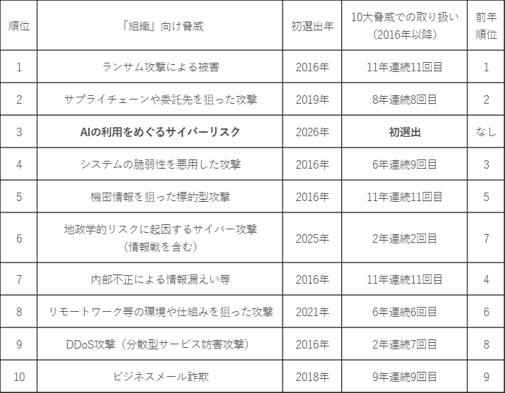 ■情報セキュリティ10大脅威 2026 [組織]