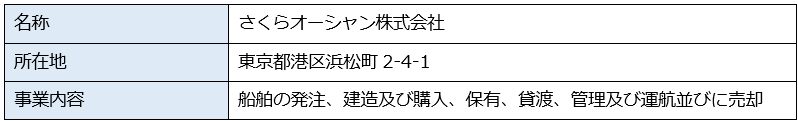 今後、関係当局の承認等を経て、船主業を行う新会社「さくらオーシャン」を設立し、事業を開始する予定です。
