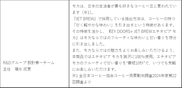 ■開発者に聞く『KEY DOORS+ JET BREWエチオピア モカ』の特徴