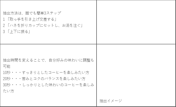 特許を取得したフィルター構造(※2)により、短時間抽出を実現した当社独自の簡易抽出型コーヒーです。