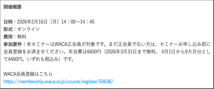 自社の商品やサービスを使って投稿してくれたユーザーの投稿はとてもありがたいもの。ですが、SNSに公開されているなら自由に使っていい、と誤解していませんか? 一般社団法人ウェブ解析士協会(WACA)は2026年2月16日、定例セッションとして無料セミナーを開催します。