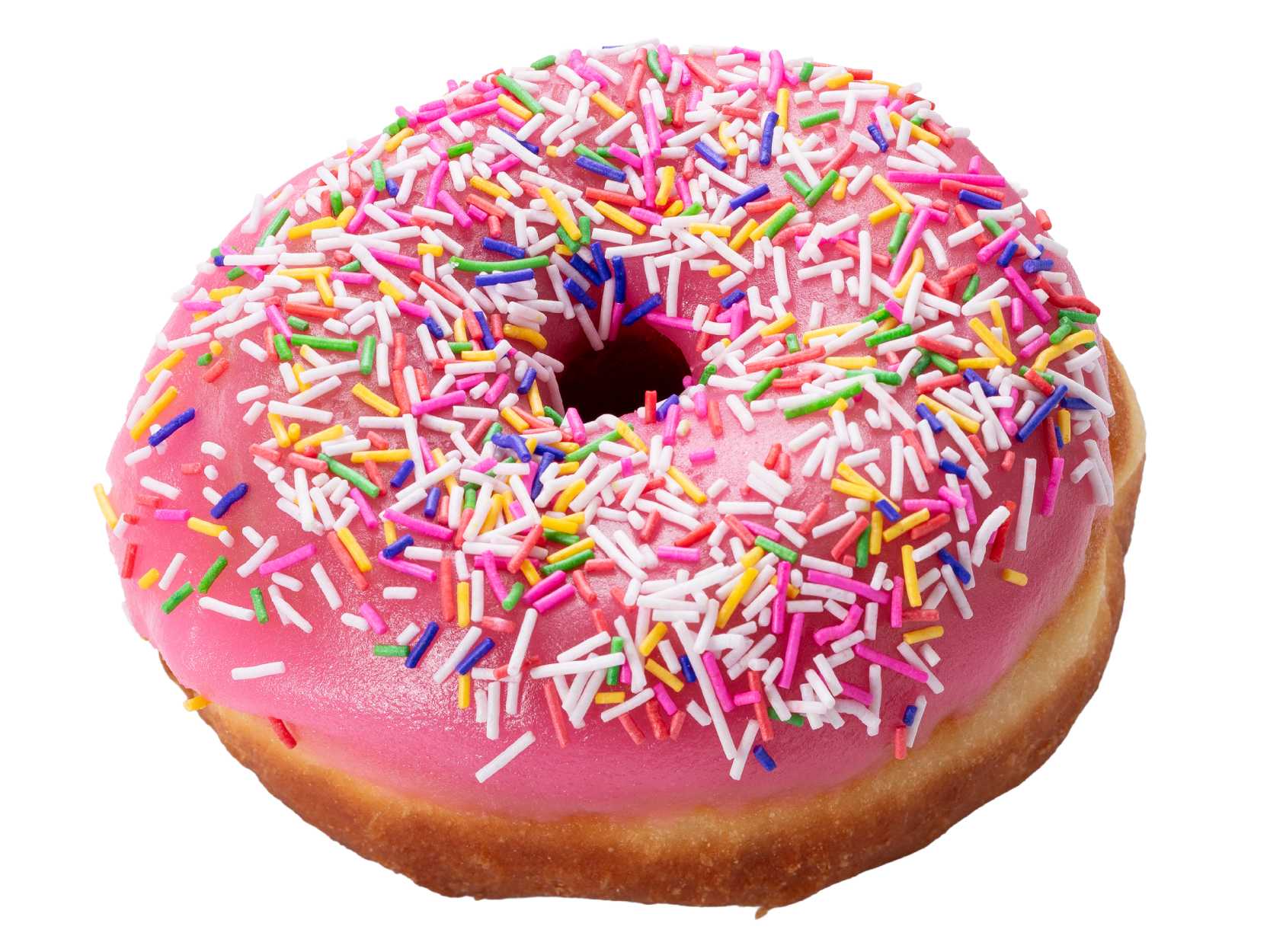 ふんわり食感のドーナツに、鮮やかなピンクのアイシングとカラフルなスプリンクルをトッピングしました。