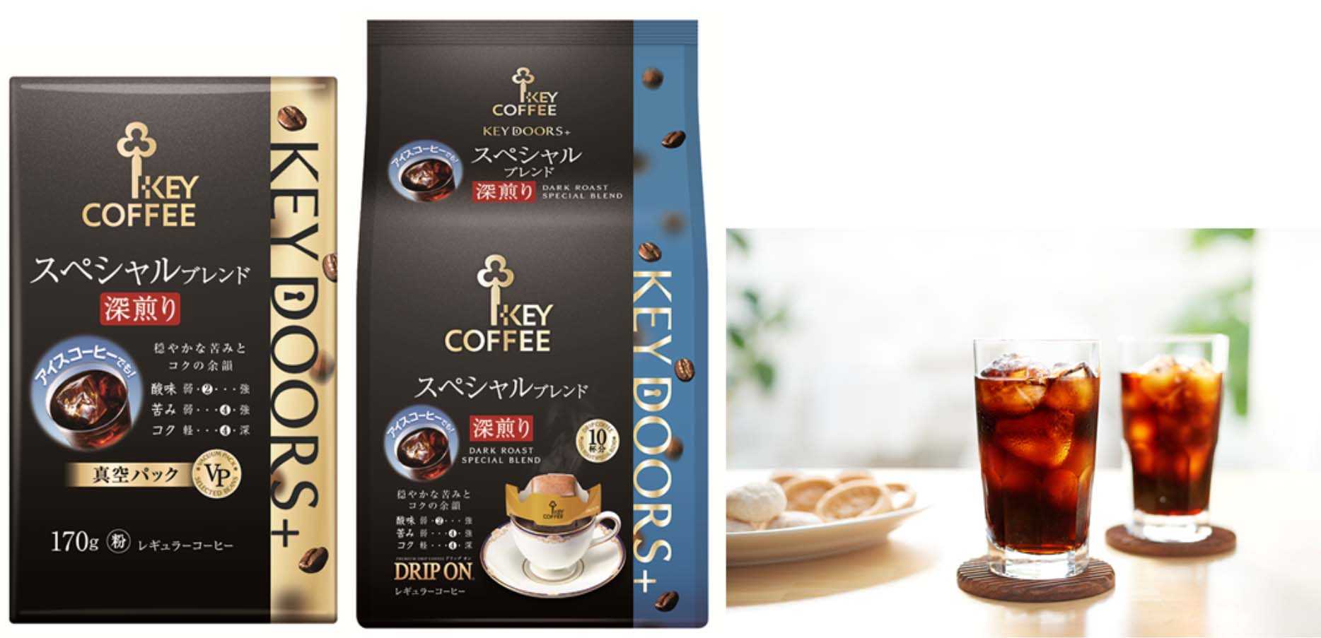 『KEY DOORS+ スペシャルブレンド深煎り』は、コク深い味わいからホットでの飲用はもちろん、アイスコーヒーとしても楽しめる商品です。