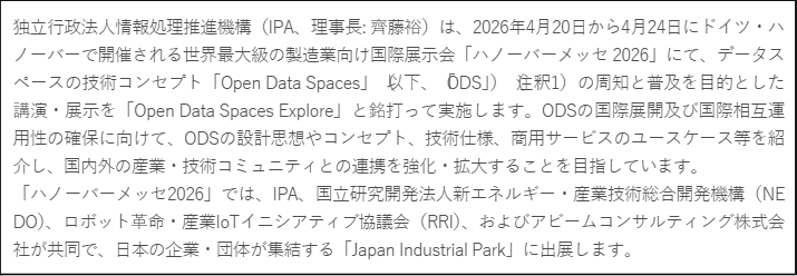 IPAウェブページ |2025年10月15日 プレス発表 データスペースの技術コンセプト「Open Data Spaces」の共同推進合意