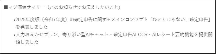 フリー株式会社(本社:東京都品川区、CEO:佐々木大輔、以下「freee」)は、2025年度版(令和7年度)の確定申告に関するメインコンセプト「ひとりじゃない、確定申告」および、新機能・サービスを発表いたしました。