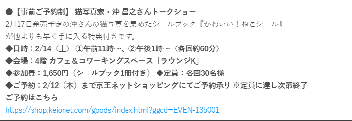 2/22(日)に『うちのタマ知りませんか?POP UP STORE』にて税込2,000円以上お買い上げの方に「2ショット整理券」を配布します。