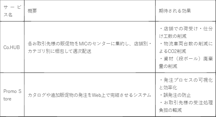 これまで、各お取引先様からの販促物やカタログは、各社個別のルートで店舗へ直送されており、店舗では日々頻繁に行われる荷物の受け入れや仕分け業務が大きな負担となっていました。また、各お取引先様においても、小口配送による物流コストの負担や、物流業界におけるドライバー不足、配送に伴うCO2排出量の削減への対応が喫緊の課題となっています。こうした課題に対し、2025年度グッドデザイン・ベスト100を受賞するなど高い評価を得ているMICの共同配送スキームと発注システムを採用することで、当社だけでなくお取引先様を含めたサプライチェーン全体の最適化を推進してまいります。