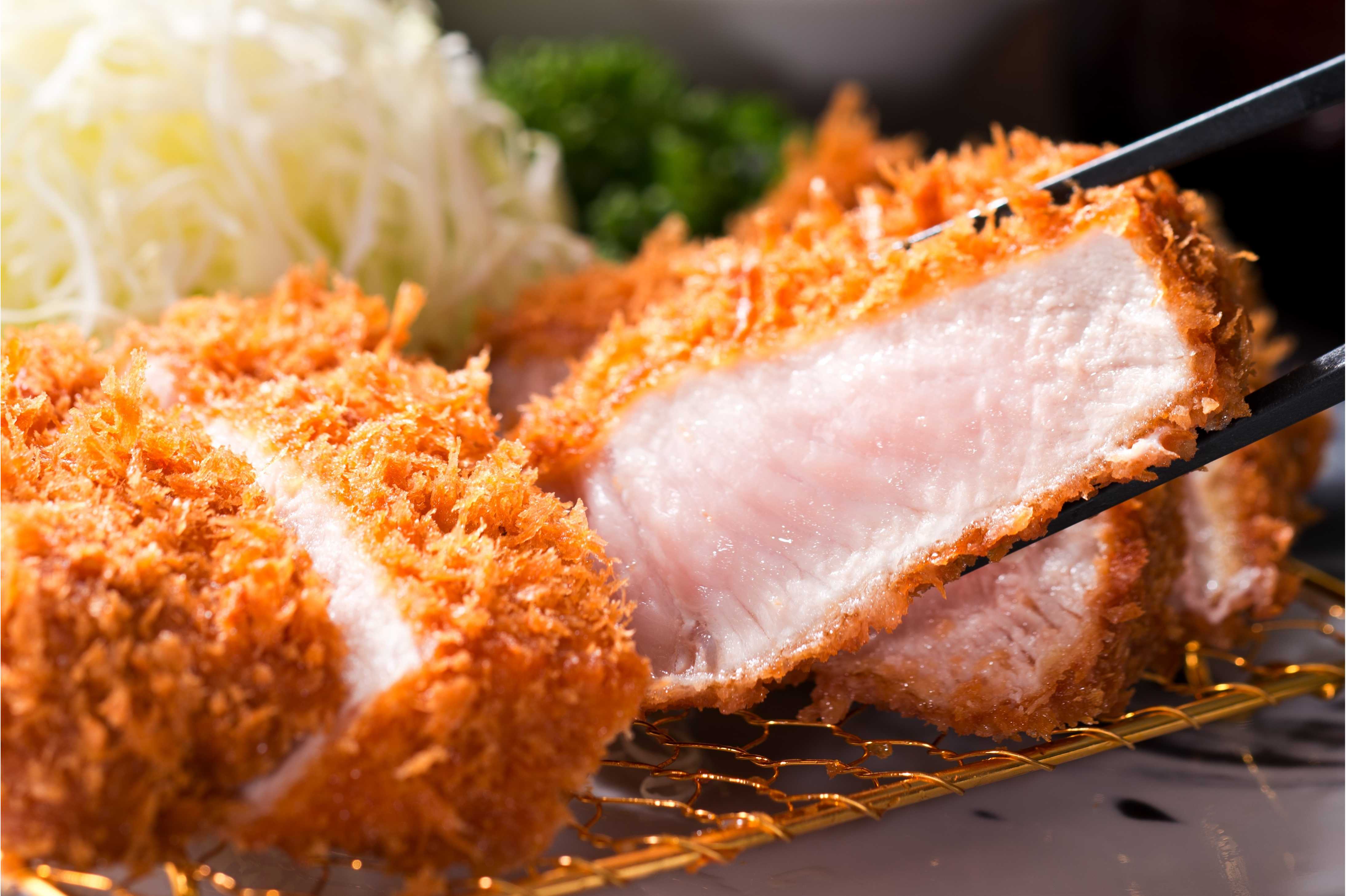 飼料からこだわり、管理された良質な厳選豚は、肉質がきめが細かく脂は甘く、肉本来の旨みがあります。ご注文いただいてから一枚一枚衣をつけ、低温でじっくりと揚げたとんかつは、厚切りでもやわらかくジューシーな味わいです。