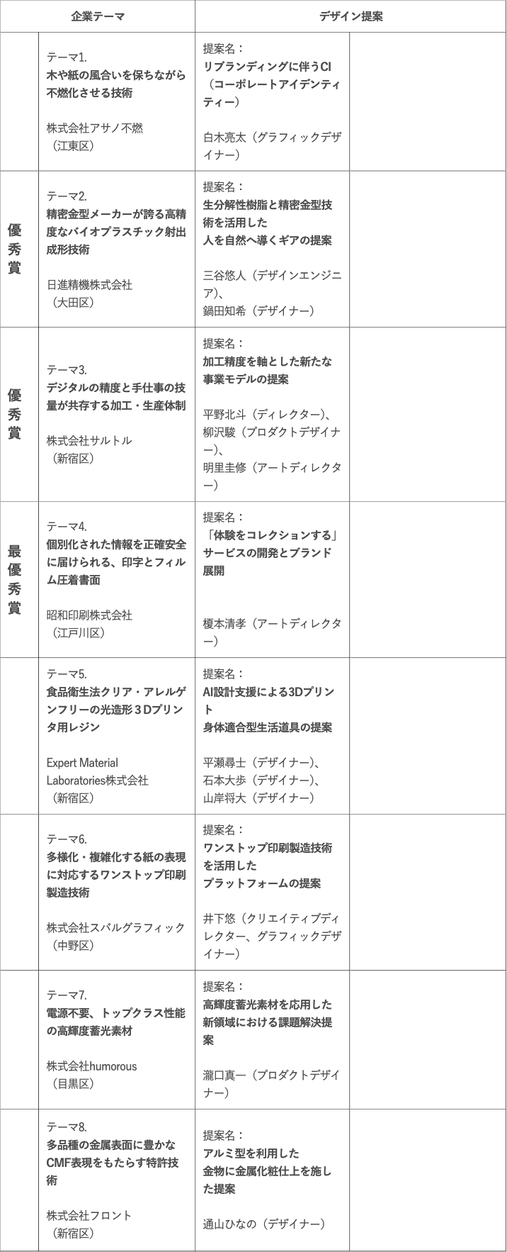 デザイン提案:企業テーマに対してテーマ賞を受賞したデザイナーからの提案