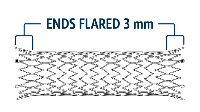 独自のフレアエンド(3 mm)のステント形状により血管壁への密着性を確保し、血管内での移動を抑制しています。