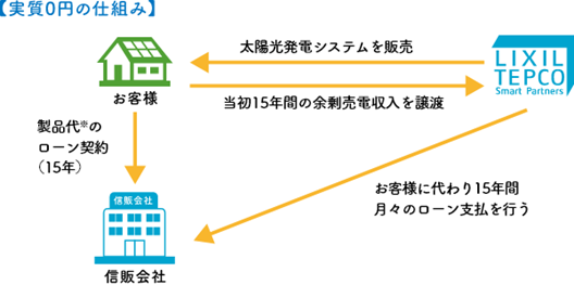 お客様のご自宅の余剰電力売電収入を LTSP社にいただく代わりに、お客様にご購入いただく太陽光発電システム製品代のローン支払負担が「実質0円(※1)」になります。