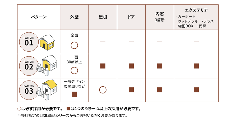 「建て得 やね・かべリフォーム」は、下記に記載のリフォームを実施することで、ご利用できます。