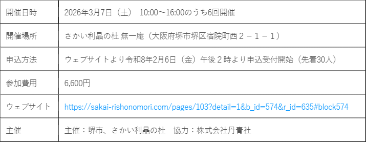 ※併催するわび茶会は、一般募集はありません。詳細は下記の堺市のプレスリリースをご確認下さい。