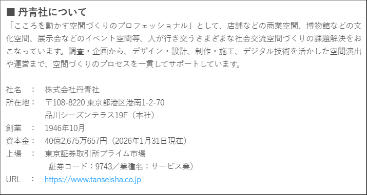 株式会社丹青社 広報室 担当:石綿、寺戸