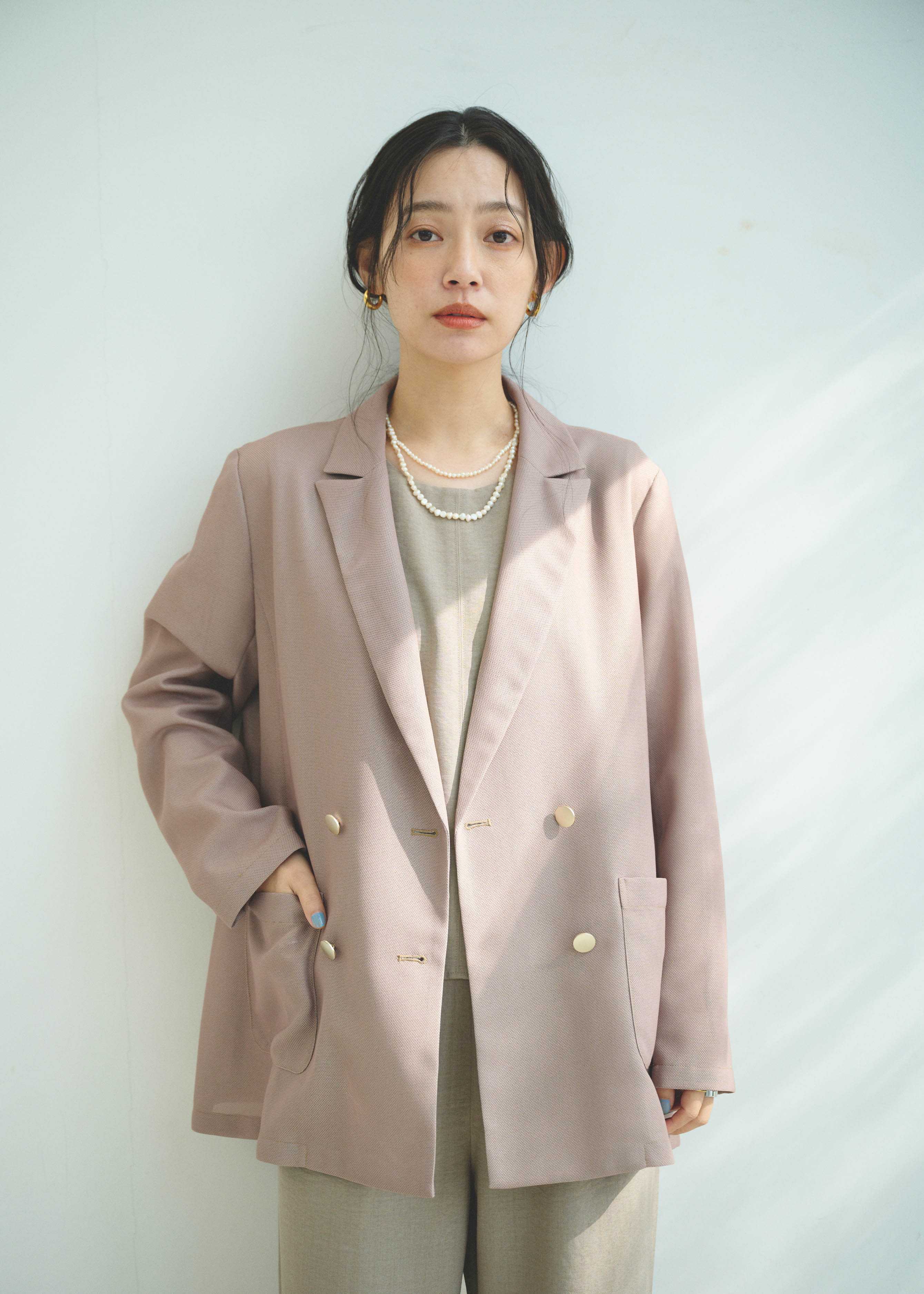 《洗える》サマ美え 金釦メッシュテーラードダブルジャケット