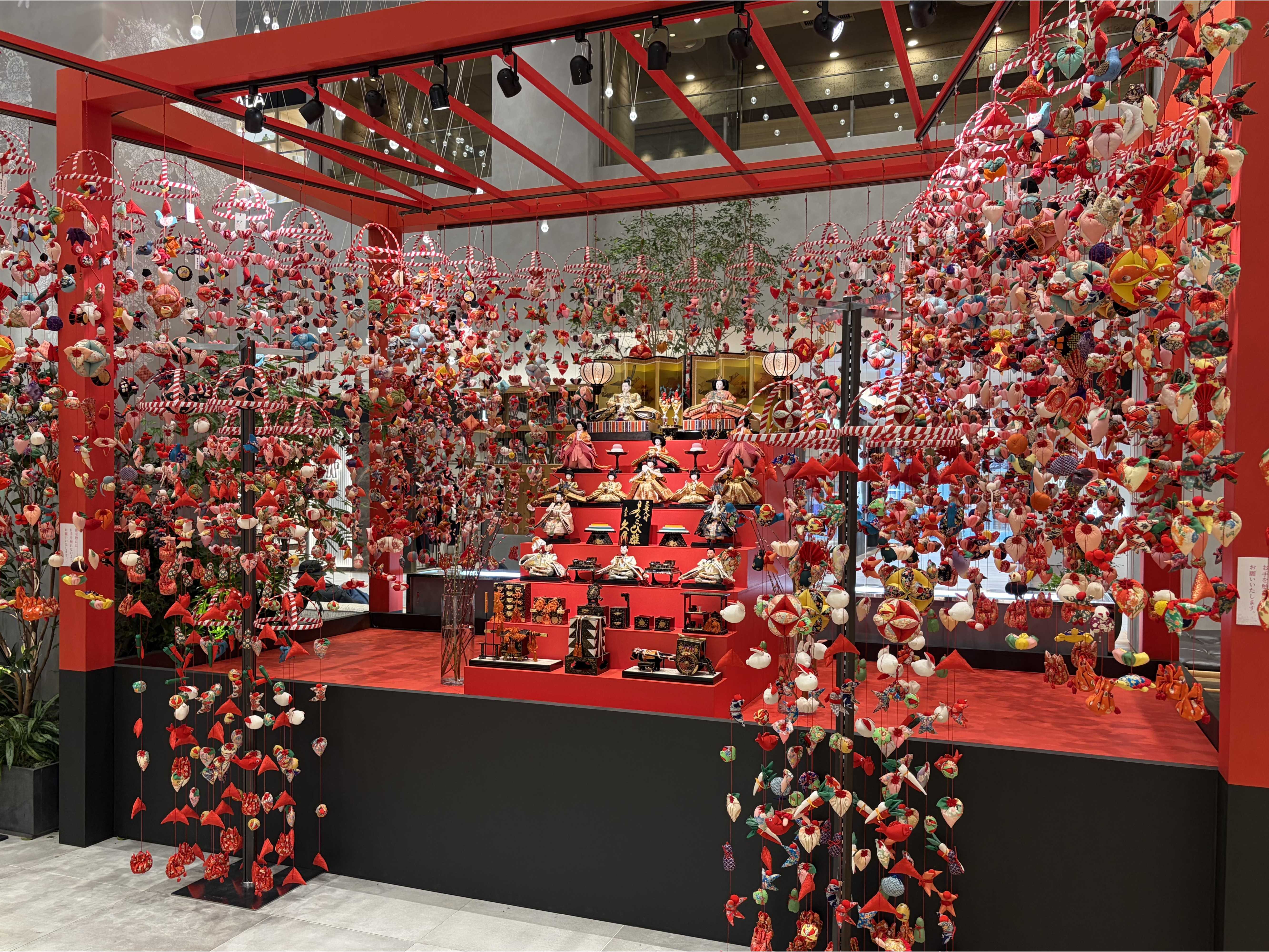 毎年恒例となる、静岡県東伊豆町稲取が発祥とされる「雛のつるし飾り」をあしらった装飾が館内に登場します。江戸時代より静岡県東伊豆町稲取に伝わる「雛のつるし飾り」は、雛段の両脇に人形を飾る風習です。ひとつひとつの飾りにやさしい心を込め、母から娘へ、娘から孫へ、受け継がれています。