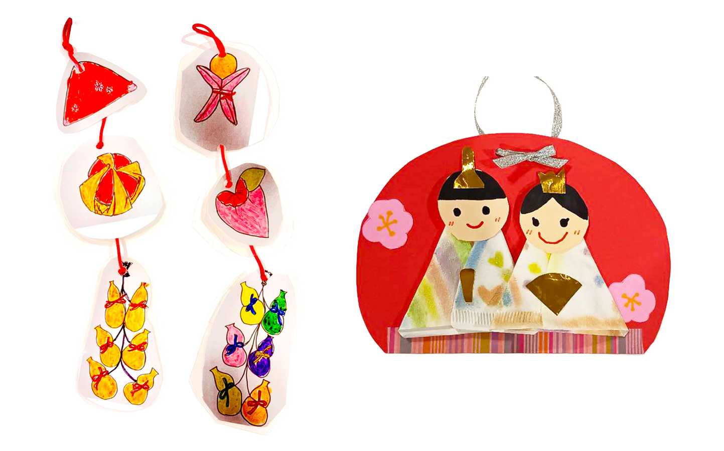 絵の具やラミネートシートを使って、お雛様や東伊豆町発祥の伝統工芸「雛のつるし飾り」を制作するワークショップです。色や形を自由に楽しみながら、ものづくりの魅力と日本の文化に触れていただけます。